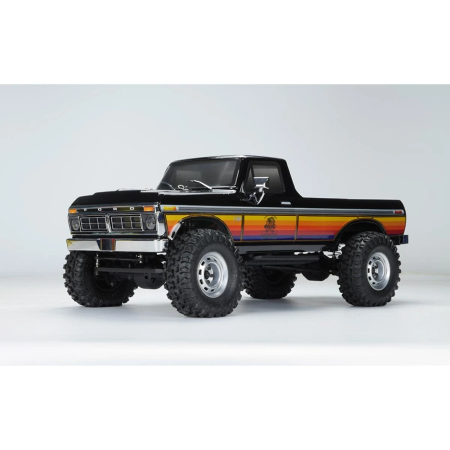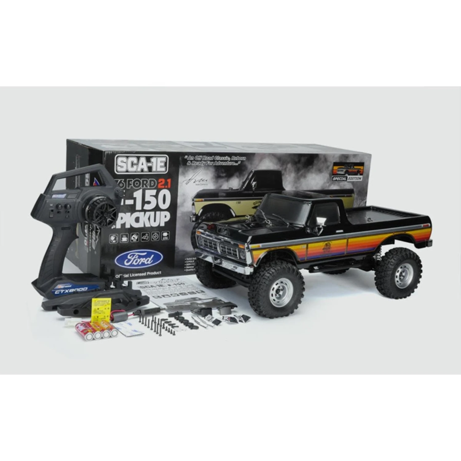 This LWB, 2.1 Spec Rig offers CMS (Chassis Mounted Servo), 1.9 true Beadlock 1.9 wheels and soft compound AT-AT tires. The fully Licensed 70’s Ford F-150 body includes chromed injection moulded details and LED ready light buckets. With 2.4GHz FHSS 2-Channel Radio Gear, a 9kg Metal Geared Steering Servo, NiMH Battery and safe USB Charger included it’s a complete ‘Ready to Run’ rig, in every sense of the word!