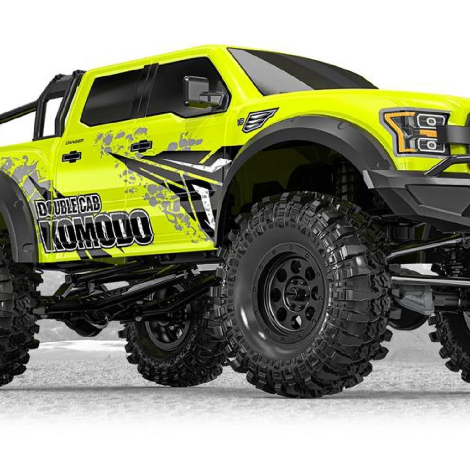 The Komodo Double Cab assembly kit features a designed double cab truck body molded in a durable 1.5mm thick lexan body. Included with the body is the grille, light buckets, side mirrors, wiper grille, bumpers and roll bar. The Stealth Body Mount system allows you to mount the body on the frame without having body posts visible outside the body. The body is mounted on the GS02 chassis kit with an adjustable wheelbase should you desire customize the rig to fit your crawling style. The GS02 kit has been designed to provide great performance by adding features such as a chassis mounted steering servo, torque twist reduction, zero ackerman steering and hardened carbon steel CVA’s and universal joints. Vehicle shown assembled and painted for display purposes. Needed to complete: Radio System, Steering Servo, Battery, Charger, Motor/ESC, Paint Features: Adjustable Wheelbase (with optional parts) Stealth Body Mount System Aluminum SD Scaler Shocks Chassis Mounted Servo Torque Twist Reducing Design Forward Weight Design Specifications: Width: 230mm Height: 213mm Length: 525mm Wheel Base: 313mm Clear Lexan Body