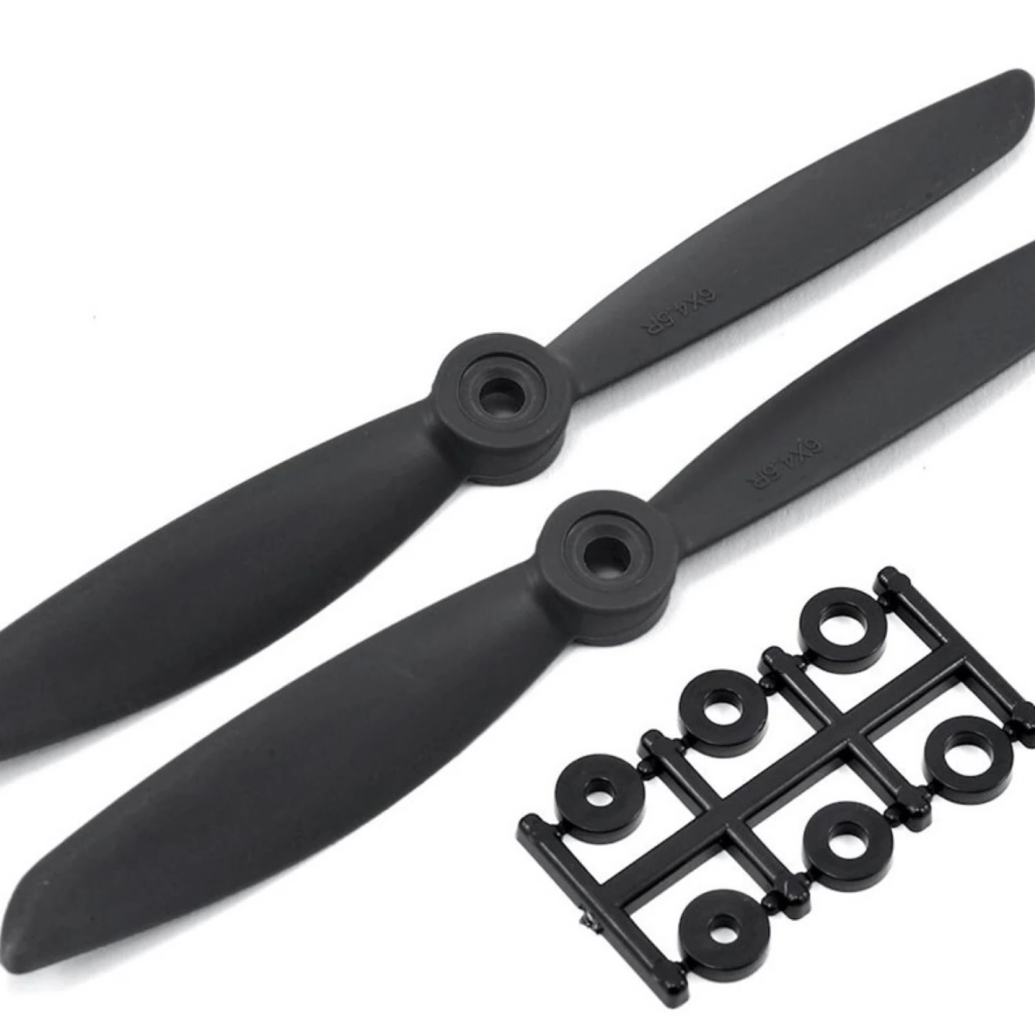 This is a pack of two HQ Props 6×4.5R Carbon Mix Reverse Rotation Propellers. HQ Props are made from a rigid composite material that helps them retain their shape, even under harsh loads or windy conditions. HQ Props provide stable punch-out’s and will increase the overall performance of your aircraft. The Carbon Mix props feature a carbon fiber fill for extra stiffness, and are only available in black. Features: Made of carbon composite material for increased stiffness Extremely stiff More stable during punch-out’s and in wind Able to use higher P gain settings Stepped motor shaft hole and included adapters to fit a variety of applications Specifications: Weight: 4.7 grams Hub Inner Diameter: 5mm Hub Outer Diameter: 14.8mm Hub thickness: 7.4mm Includes: (2) Props (2) 3mm Adapters (2) 4mm Adapters (2) 5mm Adapters