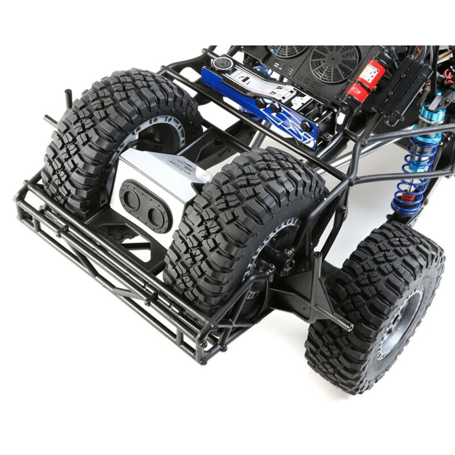 The Losi Super Baja Rey 2.0 8S Brushless 1/6 RTR Electric Desert Truck sets the standard in large scale desert trucks. With powerful performance and incredible scale looks, the SBR 2.0 takes it to the next level! Taking the Super Rock Rey chassis, adding about an inch to the wheelbase and morphing it with the front end from the Super Baja Rey gets you the all new and improved Super Baja Rey 2.0! You get the best of both worlds! The Spektrum Firma SMART 160 Amp 8S ESC and 750kv Firma 1/6th 5687 brushless motor allow you to unlock blazing speeds. The bottom loading chassis makes battery changes a breeze. Front and rear LED light bars keep everything nice and bright for off-road adventures at night. Drivers stay in control with a DX3 transmitter, a Spektrum 6100AT AVC receiver with steering priority, and officially licensed Method Racing Beadlock Wheels and BFGoodrich Mud-Terrain T/A KM3 tires. The Brenthel Trophy Truck body is modeled after their actual race truck providing an aggressive, scale-detailed look. The Losi Super Baja Rey 2.0 is the ultimate desert truck with scale looks, insane speeds, performance and Spektrum Smart.