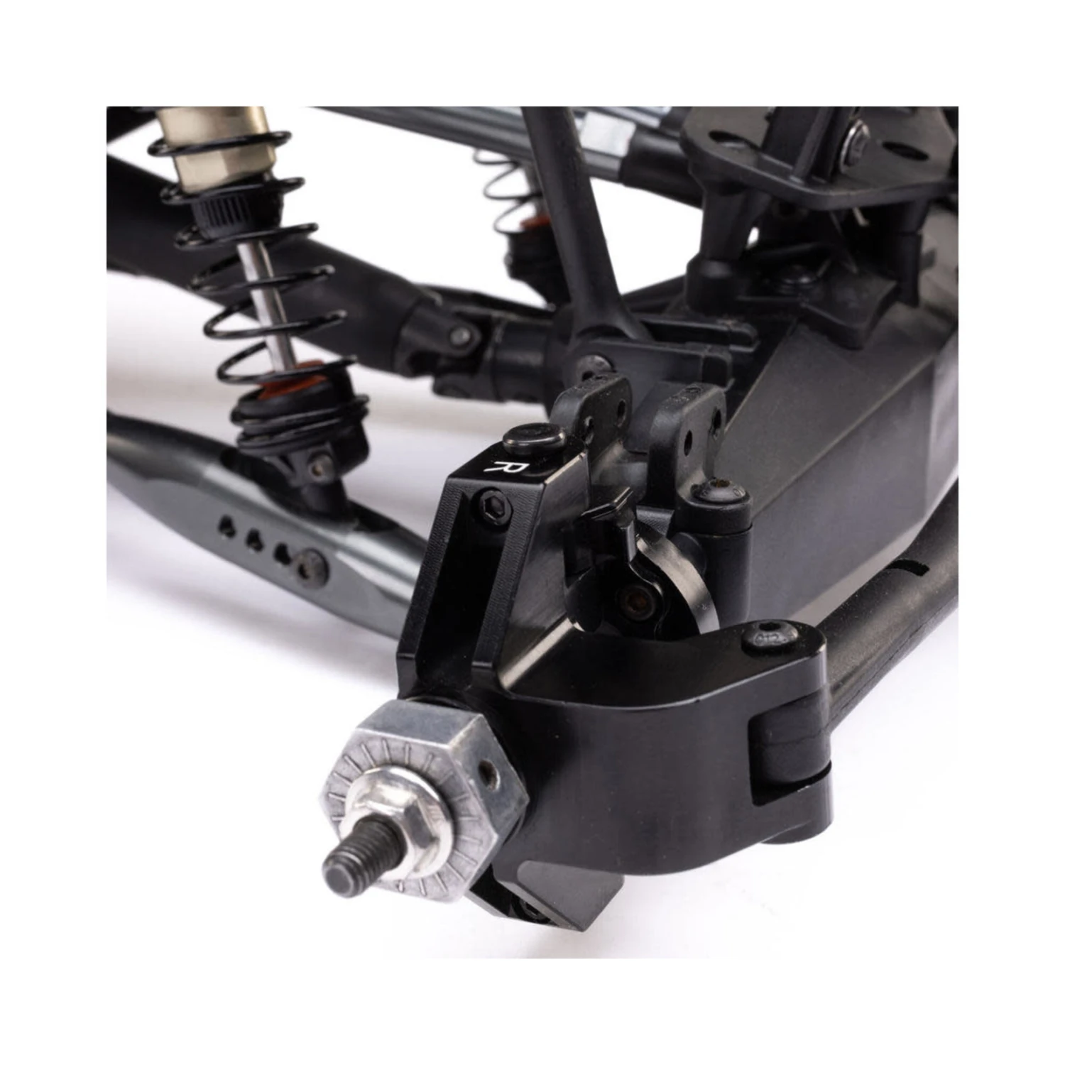 - Racing-focused, weight reducing carbon fiber chassis plates.