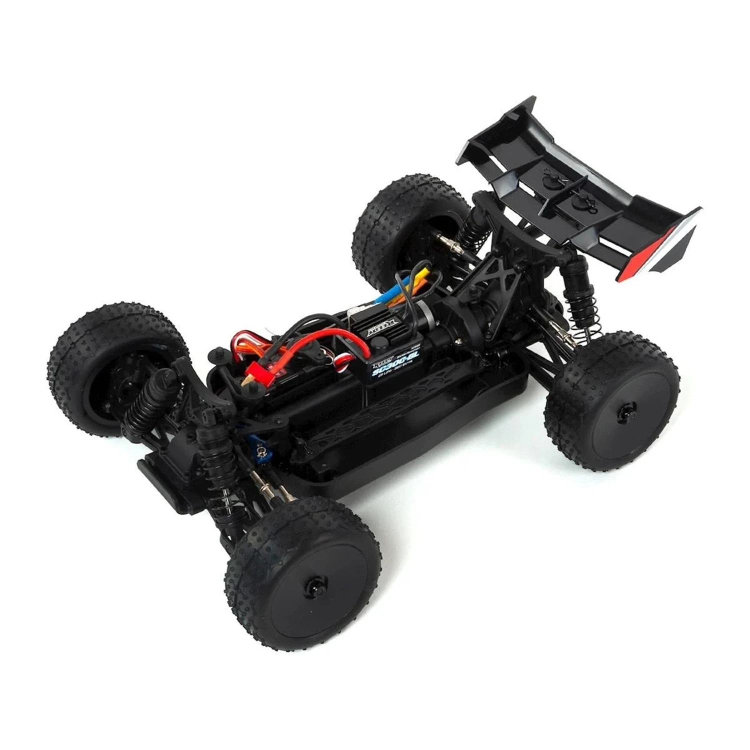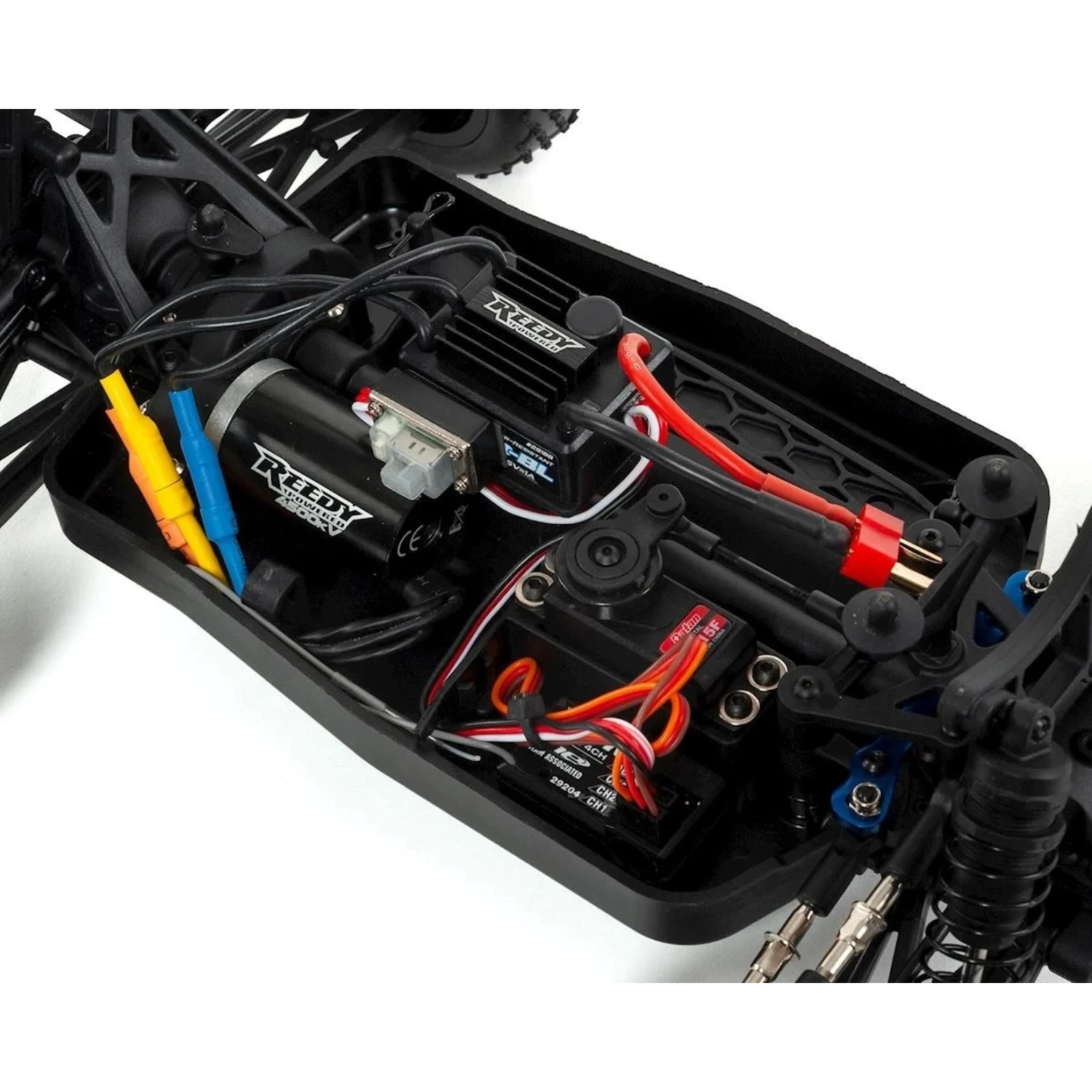 The Team Associated Reflex 14T RTR 4WD Truggy comes out of the box assembled, with a Reedy Power brushless ESC, motor, high-torque digital steering servo, and 2.4GHz radio system. With all that power and a 4WD drivetrain, the truggy’s design allows you to harness that power and turn it into pure fun! Adjustable turnbuckles, caster blocks, and rear hubs make the REFLEX 14T ready for any terrain you can throw at it. Additional features include three sealed differentials, aluminum steering rack, and lightweight aluminum center driveshaft. All you need to do is add batteries and you have big performance in a small-scale Ready-to-Run package!
